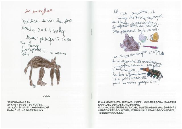 フレネ学校の生徒が発行する「ピオニエ」から抜粋した絵画や作文等と、けやの森学園の子どもたちの絵画や作文等を選定し、掲載した冊子です。