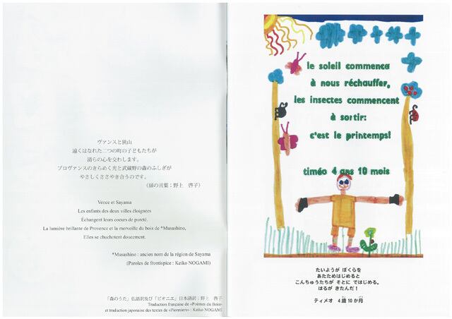 フレネ学校の生徒が発行する「ピオニエ」から抜粋した絵画や作文等と、けやの森学園の子どもたちの絵画や作文等を選定し、掲載した冊子です。